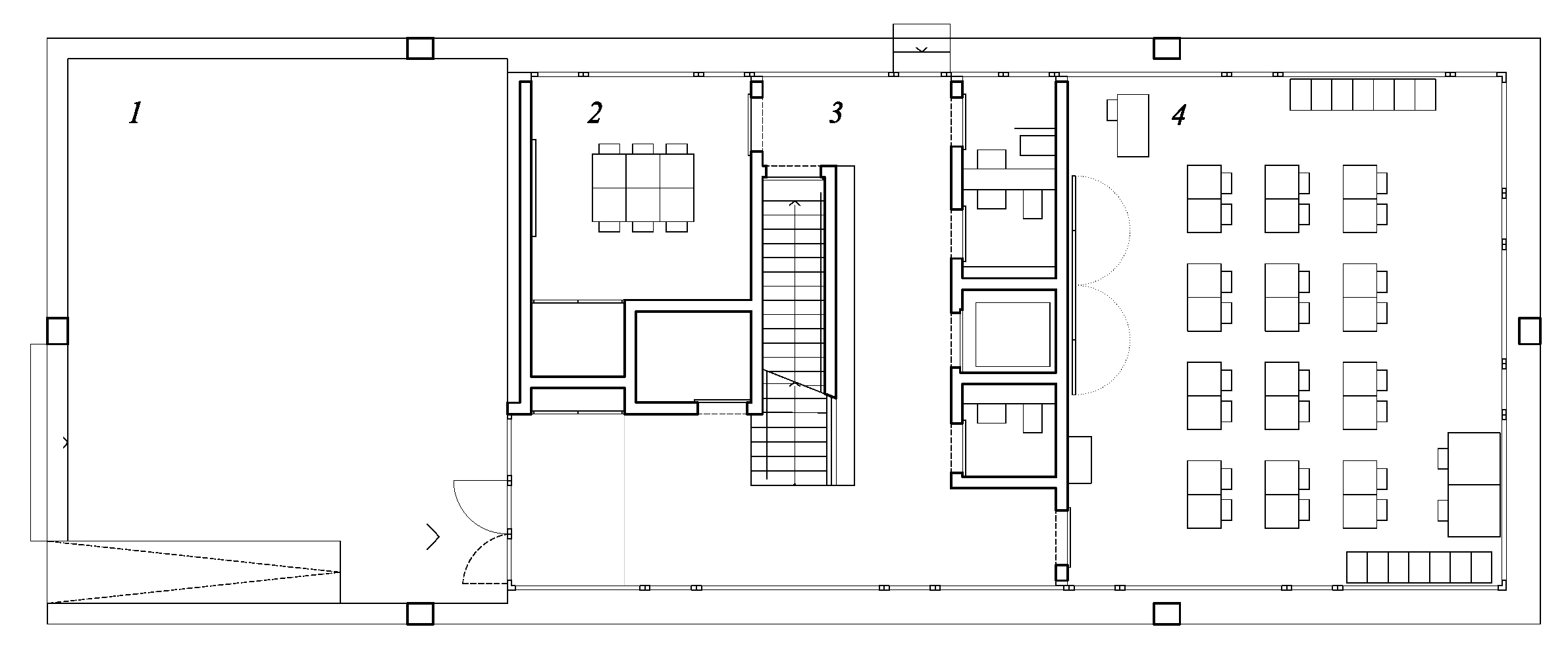 La situation préalable au projet avec deux bâtiments définissait un espace extérieur généreux et intime, légèrement surélevé et retiré depuis la rue. Les deux nouveaux volumes se positionnent l’un par rapport à l’autre et cadrent le préau de manière équilibré. L’agrandissement de l’école apporte une solution en respect de la situation antérieure, sans la détruire, au contraire, l’enrichi et la renforce. La nouvelle intervention propose une réorganisation et une précision de l’espace extérieur tout en maintenant l’importance des volumes existants. Elle se limite en hauteur et crée un niveau de référence cherchant plutôt une ligne horizontale depuis laquelle s’élève l’ancienne partie. Sans toucher les volumes actuels, les deux nouvelles constructions pavillonnaires subdivisent le préau définissant deux places. Elles sont à la fois tenues par un ancien volume et par un nouveau, ainsi que par le bâtiment voisin pour la première place et un mur délimitant la parcelle à l’est pour la deuxième. Ce positionnement souligne la morphologie du lieu et du quartier dans laquelle les bâtiments solitaires composent le vide et se tiennent en balance.