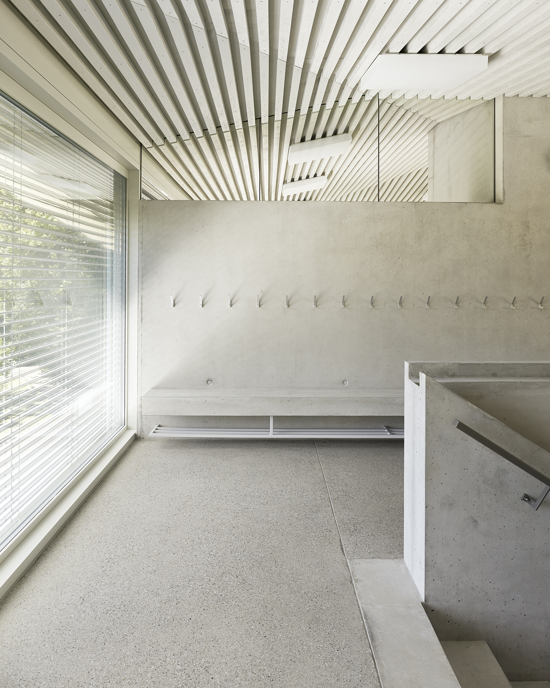 A l’image d’un pavillon les deux nouveaux bâtiments sont disposés et organisés de manière simple, avec une orientation facile pour les utilisateurs et une illumination généreuse. Les constructions sur deux niveaux (et un sous-sol minimal) tiennent les salles de classe de part et d’autre, accessibles depuis le foyer central. Au rez-de-chaussée un parvis couvert accueille les enfants et offre un espace extérieur abrité.