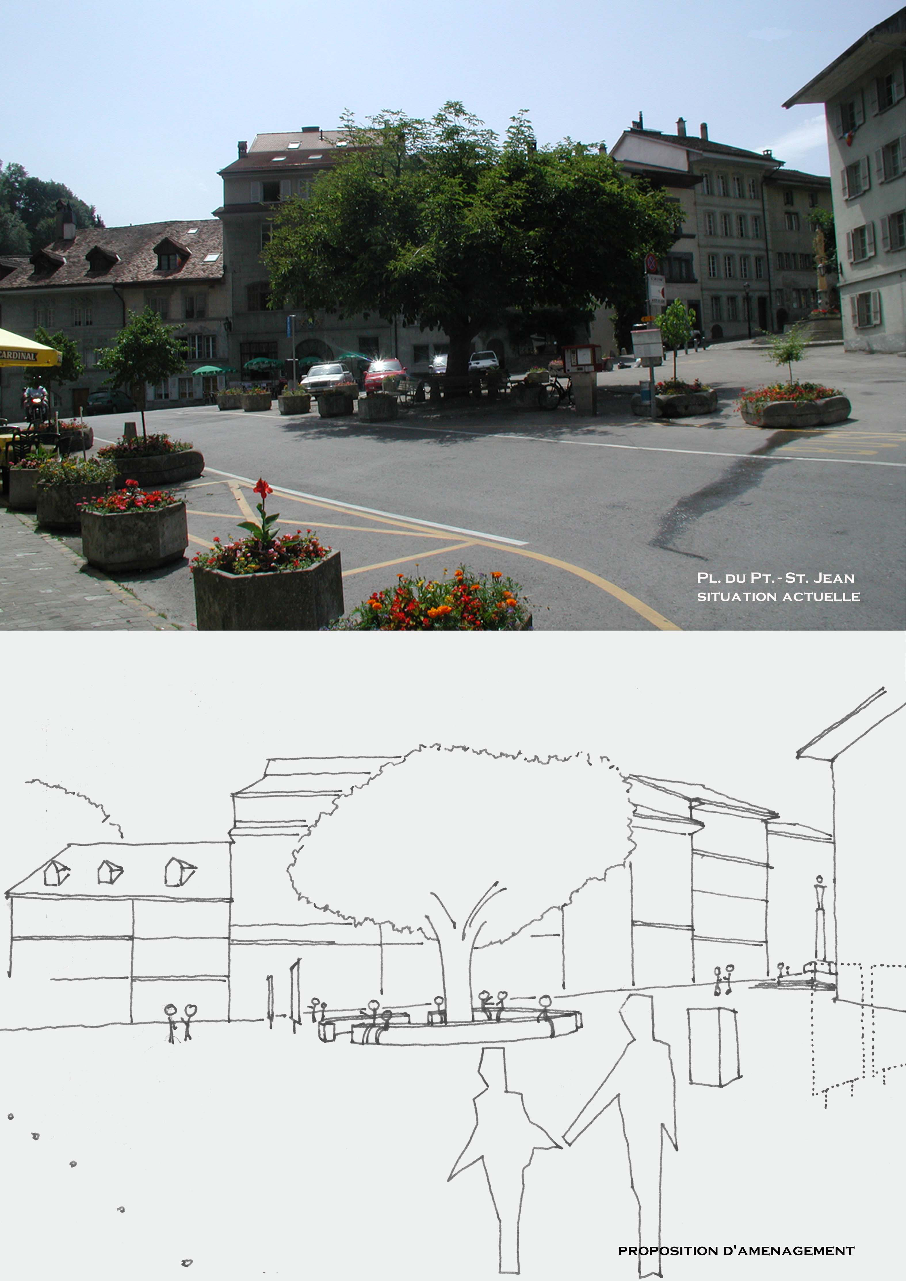 La démarche participative, précédant l'Agenda 21, débutée en 1999 par les habitants et l'association du quartier de l'Auge en vieille ville de Fribourg a abouti au projet d'aménagement urbain et de zone de rencontre. Le pilotage de la commission d'aménagement en collaboration avec les autorités locales a permis de coordonner les différents enjeux du projet en voie d'être réalisé.