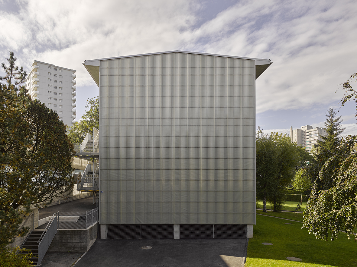 Les pavillons scolaires et d’accueil extra-scolaire sont développés à partir de modules carrés adaptables. Ces éléments sont répliqués en longueur et en hauteur pour s’élever facilement jusqu’à trois niveaux. La simplicité du système et la neutralité des espaces se prêtent avec justesse à des contextes et à des programmes variés. Quatre écoles en ville de Fribourg ont déjà adopté ce type de pavillons. Même s’ils pourraient être éphémères, les volumes sont en effet conçus pour être démontables et ré-affectables, ils offrent aux utilisateurs des espaces généreux bénéficiant d’une belle luminosité et d’une grande qualité.